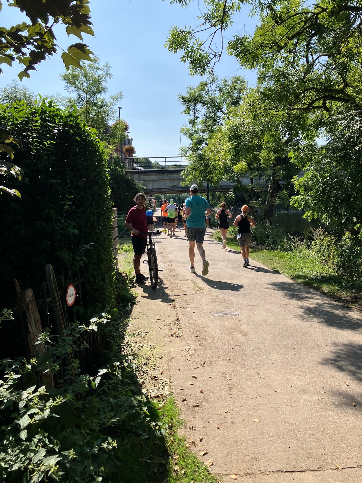 The race started, I felt the usual energy from all the runners surrounding me, took it easy, deep breaths, leisurely pace, and immediately rolled my ankle. It wasn’t too bad, especially in the beginning, but it became one of the only things I could think about in the last few kilometers. During most of the race I was in a flow state, listening to music, moving with the crowd, looking at the scenery, eating bits of delicious marzipan, maintaining my form without thinking too hard about it. I received audio messages from my partner and daughter encouraging me; lots of people were also cheering during climbs and on the sides which really makes the event charming.